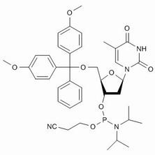 名稱: 5'-(4,4'-二甲氧基三苯基)-3'-脫氧胸苷 2'-(2-氰乙基-N,N-二異丙基)亞磷酰胺