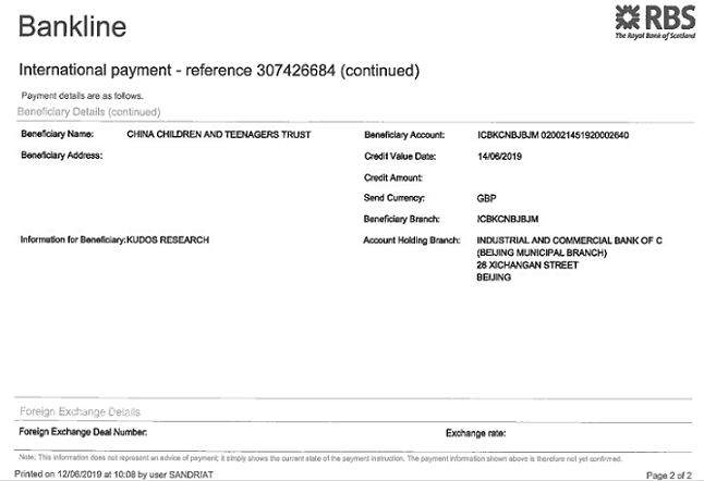 我公司參加并配合Kudos Research (一家專業(yè)的市場研究機構(gòu)https://www.kudosresearch.com)某個項目的調(diào)查研究,Kudos Research以我們的名義分別向“中國兒童少年基金會”和“中國扶貧基金會”捐贈一筆善款。